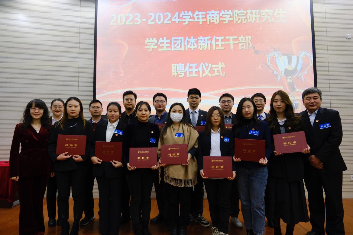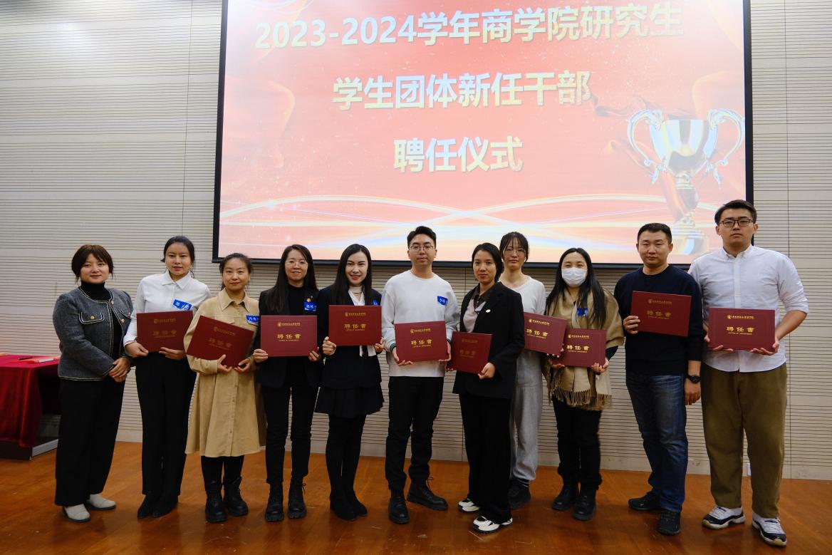 德赢vwin官方入口党委副书记杨中英为德赢vwin官方入口研究生会主席团主席刘海尧、李皓翔、李梦涵,各部部长李珺、杨进京、杨雪、苏环、刘安琪、李楠、张鹏琪、耿晨宇、叶雯筠,各部副部长金磊、吴雨池、郑佳霓、刘涵宇、余佳一、吴欣然、王佳乐、张蕴佳颁发聘任书。