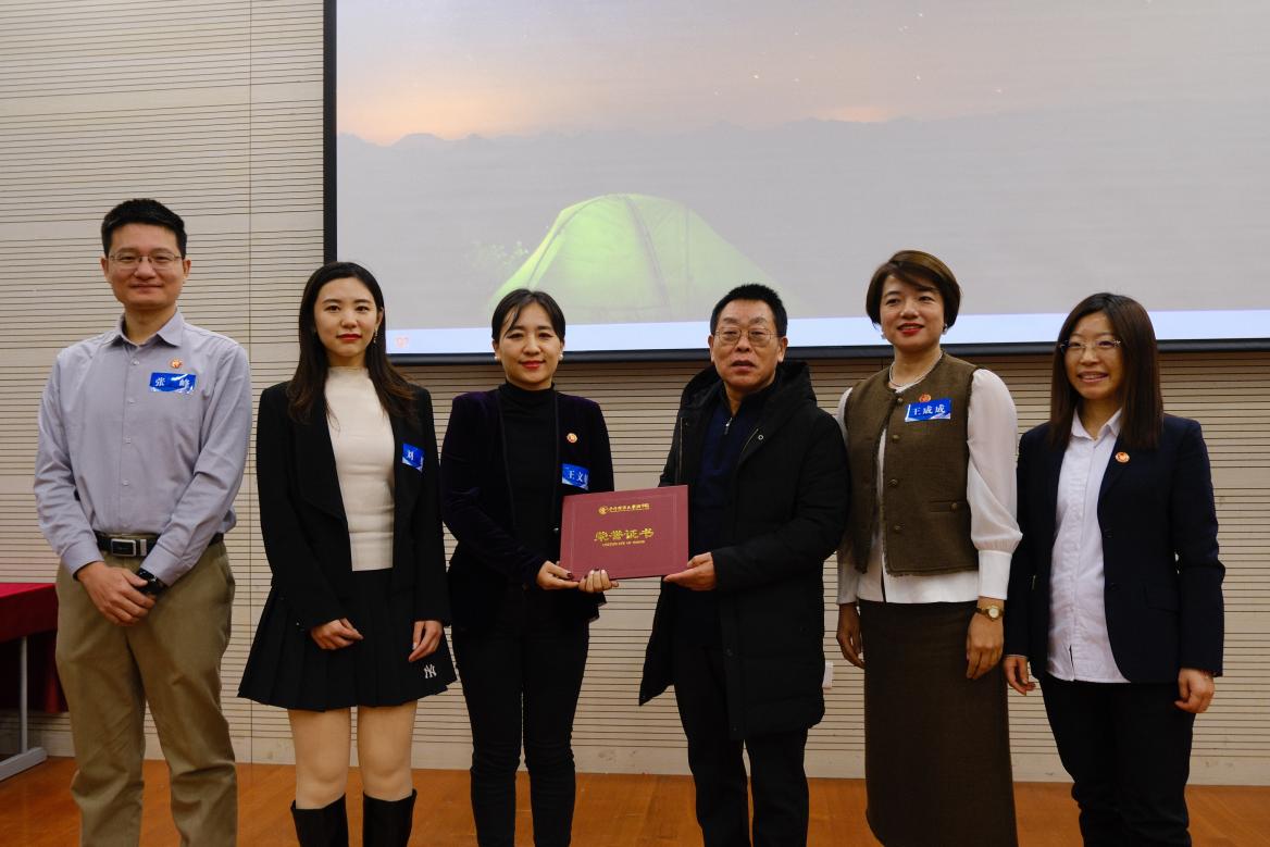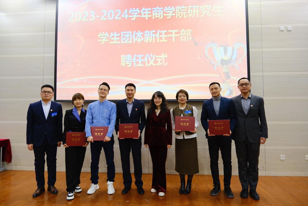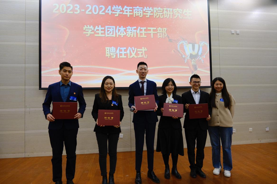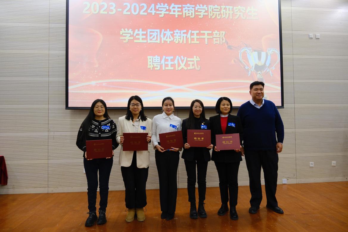MBA税务俱乐部主席穆阳为秘书长22级汤卫星、执行秘书长23级郑娟、副秘书长23级李风霞、赵桂碧、荣辛、郑苏萍颁发聘书。