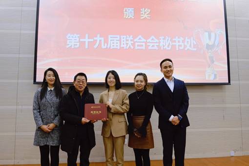 李跃新书记向第十九届MBA联合会秘书处代表颁奖