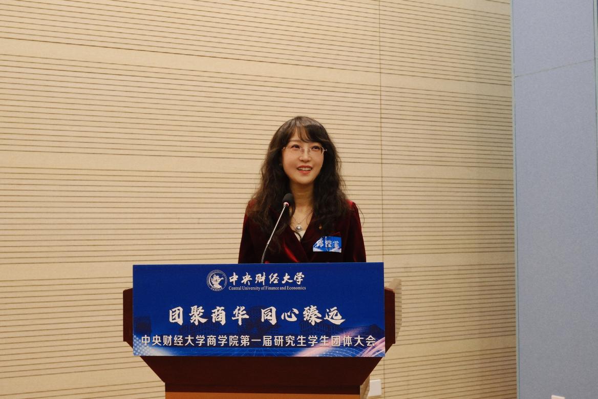 德赢vwin官方入口MBA社团协会秘书长、第六届招生推广大使团长、第十九届MBA联合会秘书长郭子瑶宣读了《德赢AC米兰官网研究生学生社团建设管理办法》(征求意见稿)。