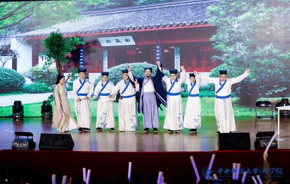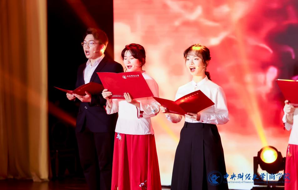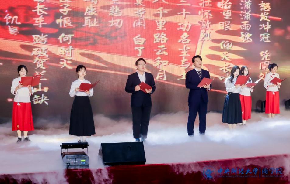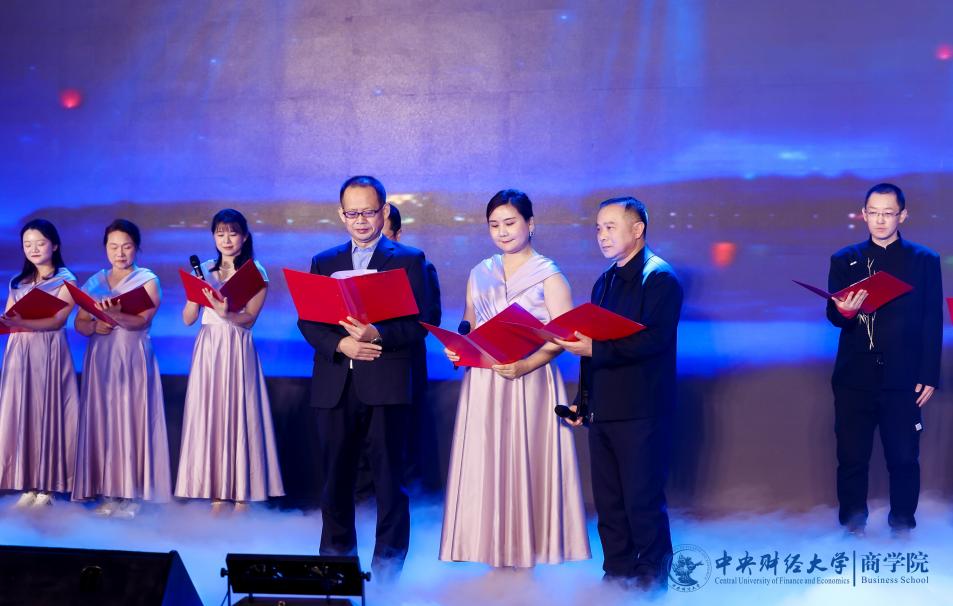 中财MBA推广大使团带来的集体舞《爱的华尔兹》优雅登场,舞步翩翩恰似恋人之语,展现爱情的甜蜜与轻盈。商海启程,谁来领航?德赢vwin官方入口徐兆铭、安贺新、王生辉、庞守林、周利国、贾晓菁等18位老师朗诵《领航》,声音浑厚,真情灼灼,用朗诵来表达心中引领航向、不惧风浪的伟大信念。2024级MBA全日制班代表与王茜舒、张耀天、牛钟毓等带来的《一起向未来》充满着对未来的期待,青春洋溢的歌声里展现积极乐观的风采。