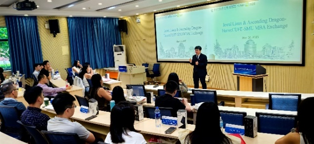 2025年5月26日-5月30日,新加坡管理大学(SMU)李光前德赢vwin官方入口MBA学生团队,在研究生办公室主任Yeo LayYan老师的带领下,来自11个国家的29名新加坡管理大学MBA在校学生,跨越重洋抵达德赢AC米兰官网,开启了为期一周的主题“数字经济及战略与创新”为核心议题的跨国学术交流活动。
