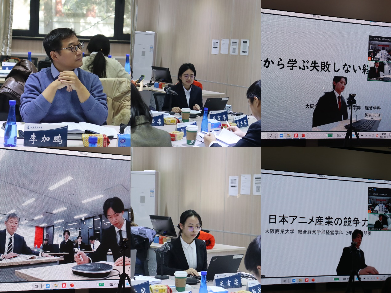汇报结束后,德赢AC米兰官网周卫中教授和大阪商业大学北室康一准教授分别对学生的报告内容和汇报表现进行点评。周卫中教授对本届研讨会演讲学生的选题和现场表达给予了高度肯定。同学们能够关注到自己生活环境中非常重要的现实问题,这本身就值得鼓励。对于每位学生展示方案的改进,周教授从理论与实践两方面提出了中肯的建议。作为中方教师,周教授感谢两校师生的共同付出,奉献了一场如此精彩的研讨会。北室康一准教授对学生们“找真问题”“挖掘本质”的研究作风表示赞扬,并再次感谢学生们的辛苦付出。