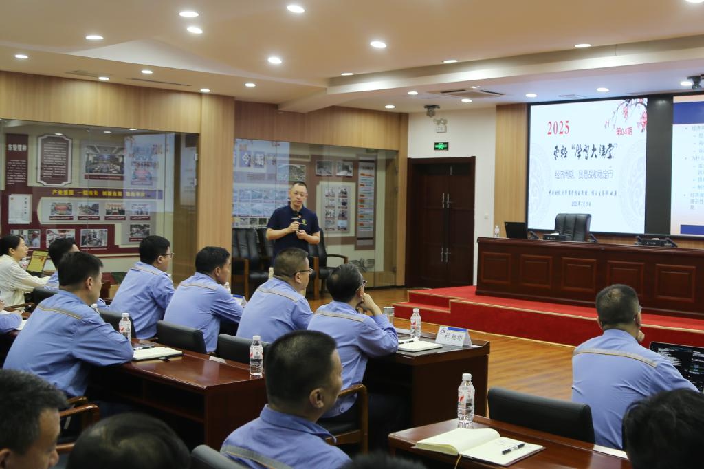 作为校企合作共建的重要内容之一,姚潇为东轻领导班子成员、各部门、单位班子成员及财务部全体人员开展专题讲座。姚潇以《经济周期、贸易战与稳定币》为题,立足行业领域的最前沿研究,以其独特视角,就正确看待中国经济的表现、中美贸易战的后续影响以及稳定币对全球金融格局的深刻影响等三大方面进行了分享。