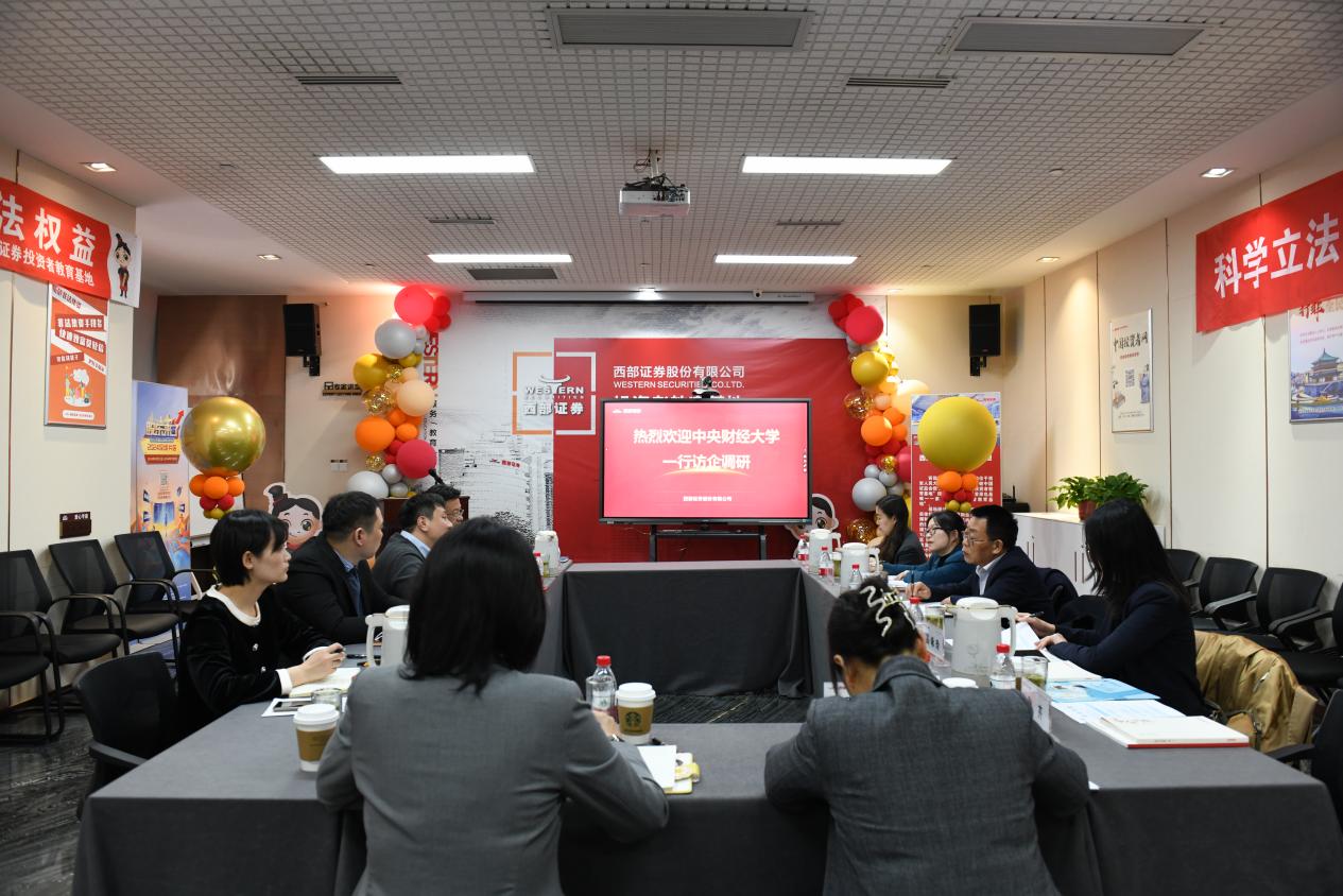 11日下午,学院一行前往西部证券总部进行访企调研,并参观西部证券国家级投教基地。西部证券公司首席战略与人力资源管刘庆海热烈欢迎德赢vwin官方入口一行参访,并详细介绍了西部证券在业务拓展、创新服务及市场影响力等方面取得了显著成绩。财富决策委员会主席、总经理助理殷涛介绍了西部证券财富板块的业务特点以及与本科生实习就业的紧密联系。人力资源部总经理赵聪详细介绍了公司的历史沿革、主营业务及人才培养模式,为校企合作打开多维度视角。
