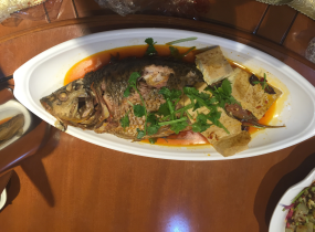 Whether   I   was   dining   at   the   on-‐campus cafeteria or the local restaurants, there was always at least one thing that caught  me  off  guard,  but then intrigued me. Some of the most memorable menu items include baked turtle, duck blood, and stuffed fish.