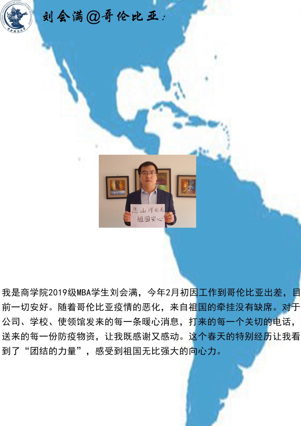 The students reported on their life, work, studying and epidemic prevention, and expressed theirgreetings andconcern to professors and studentsat home, and gratitude for thecareful and thoughtful service of CUFE Business School. The students said that through the epidemic prevention and control, it is necessary to learn the right way ofthinking, to be independent, adapt to changes, reduce anxiety, face reality bravely, and dothose that would really help.