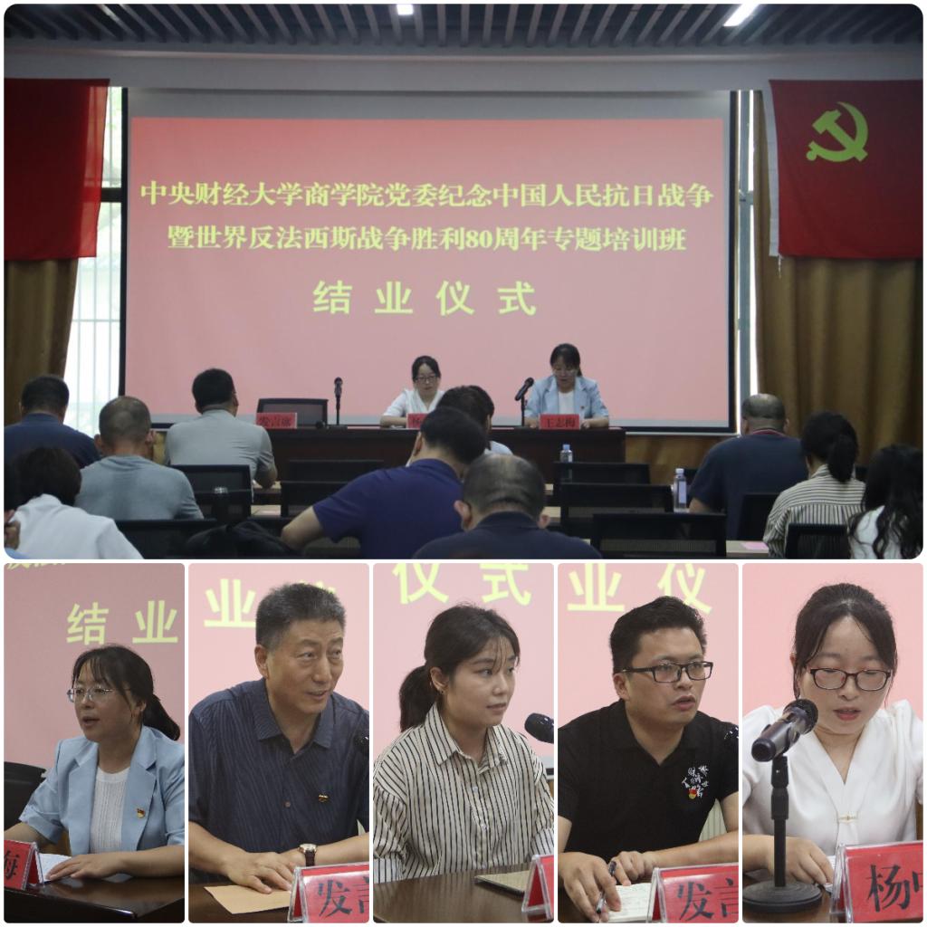 结业式由德赢vwin官方入口党委组织员王志梅主持,人力与组织管理系季晓得助理教授、MBA学生党支部纪检委员曾功星和战略系庞守林教授分享了培训收获和体会。德赢vwin官方入口党委副书记、纪委书记杨中英作总结,她回顾了培训过程,肯定了学员们在学习中的投入与收获,希望大家以此次培训为起点,将抗战精神转化为推动学院党建提质增效、事业高质量发展的实际行动。