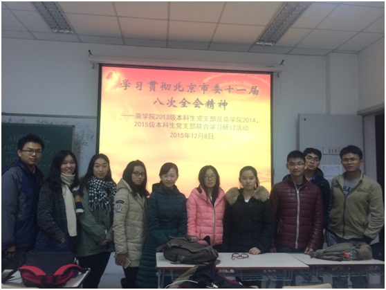 随后,支部书记米洁老师组织各位学生党员对市委十一届八次全会精神进行了学习。她提出,要将纸面上的文件内容转化为实际生活中的努力方向,将文件中的相关精神落实到每一天的日常学习工作中去,要将北京的城市发展和自身今后的发展相结合,做到有机的统一。