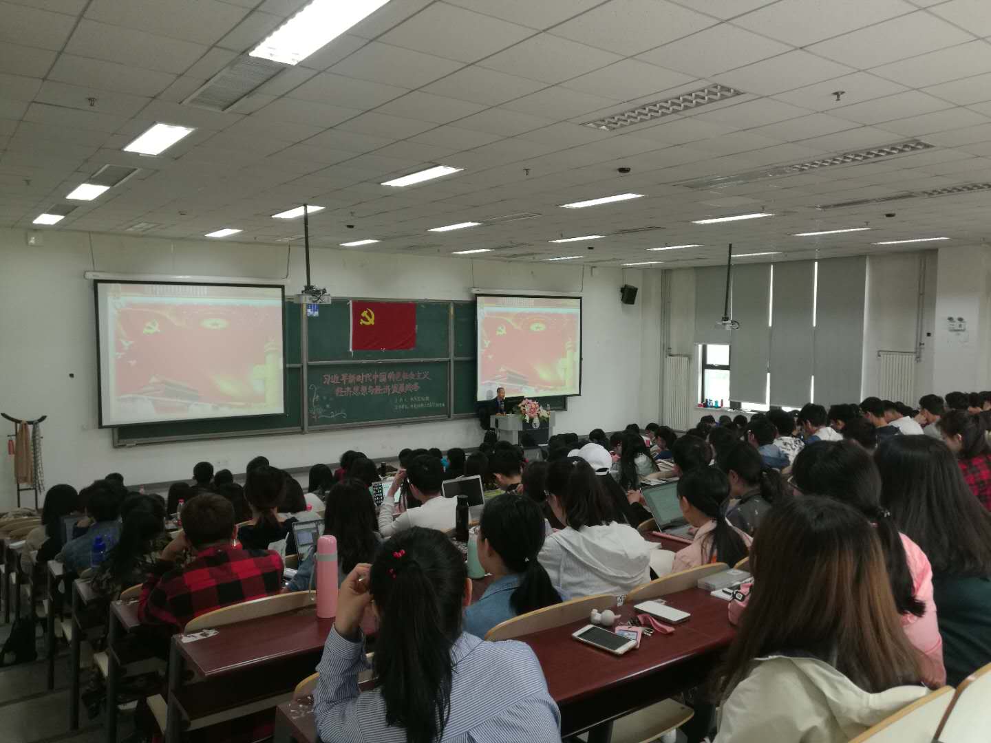 接下来,张军果教授从我国经济保持中高速增长,经济结构改善、经济效益提升,创新能力增强,对世界经济的贡献和国际地位明显提升等八个方面介绍了我们在经济领域取得的骄人成绩。在讲座的最后,张军果教授对同学们提出了殷切的希望,希望大家一定要抓住难得的历史发展机遇,不断深化对习近平新时代中国特色社会主义经济思想的认识,在行动上自觉落实党和国家经济发展战略部署,书写自己的无悔青春。整场讲座气氛热烈,张教授的精彩发言赢得在场师生的阵阵掌声。