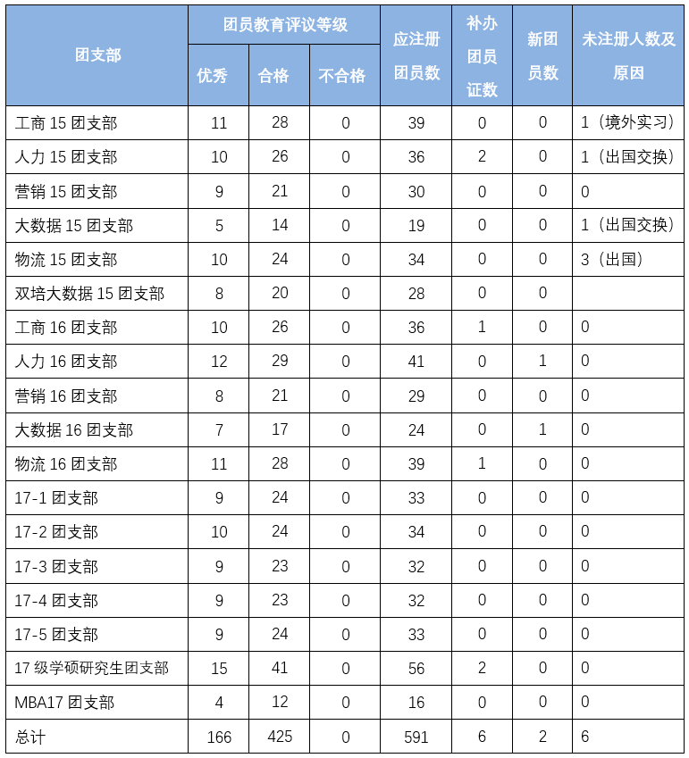 根据各支部团员教育评议情况,德赢vwin官方入口团委组织部开展团员团籍注册工作,对于评议等级“优秀”、“合格”的团员进行团籍注册,加盖注册专用印章,对于评议等级为“不合格”的团员不予注册。以下为德赢vwin官方入口各支部2018年上半年团员教育评议及团员团籍注册情况: