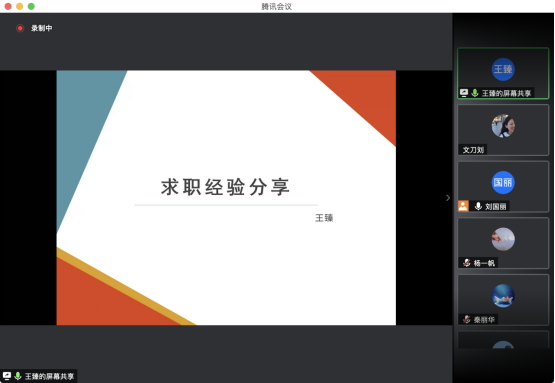 2021年春招正在进行,2021年的秋招也将逐渐来临。为提高2021届学硕同学的就业意识,同时为准备求职的同学提供经验参考,4月13日,德赢vwin官方入口2020级企管学硕研究生党支部联合班委开展“百名党员办实事——职引未来”秋招经验分享会主题党日活动。会议采取线上形式,特邀德赢vwin官方入口2021届毕业生王相谋、王臻、杨书雷3位同学进行经验分享。