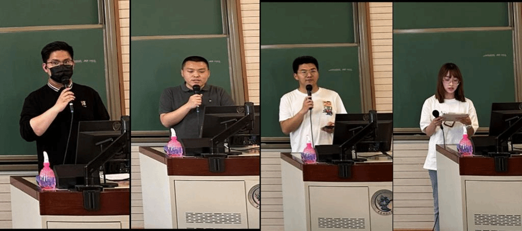 5月13日下午,全体学员在学院南路校区主教学楼分组开展讨论交流并进行学习成果汇报。学员们从理论自学、党课培训、实践活动三个角度分享了自己的心得感悟,王沁龙、孙腾笑、郭耀家和马佳雪等四位组长代表本组同学上台汇报了学习成果,党校班主任孙翔老师主持讨论交流会。