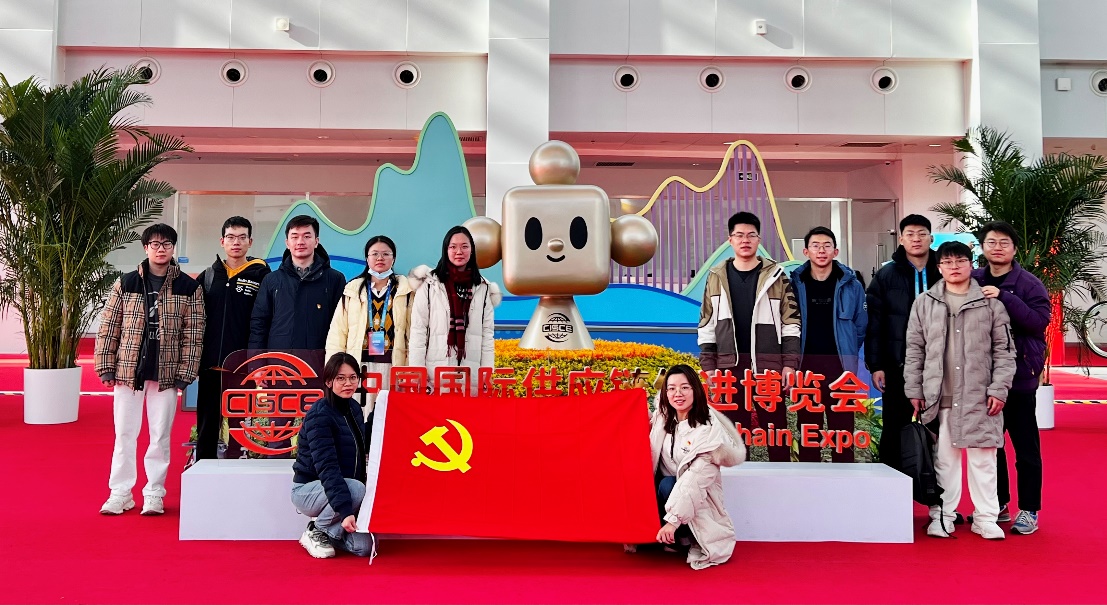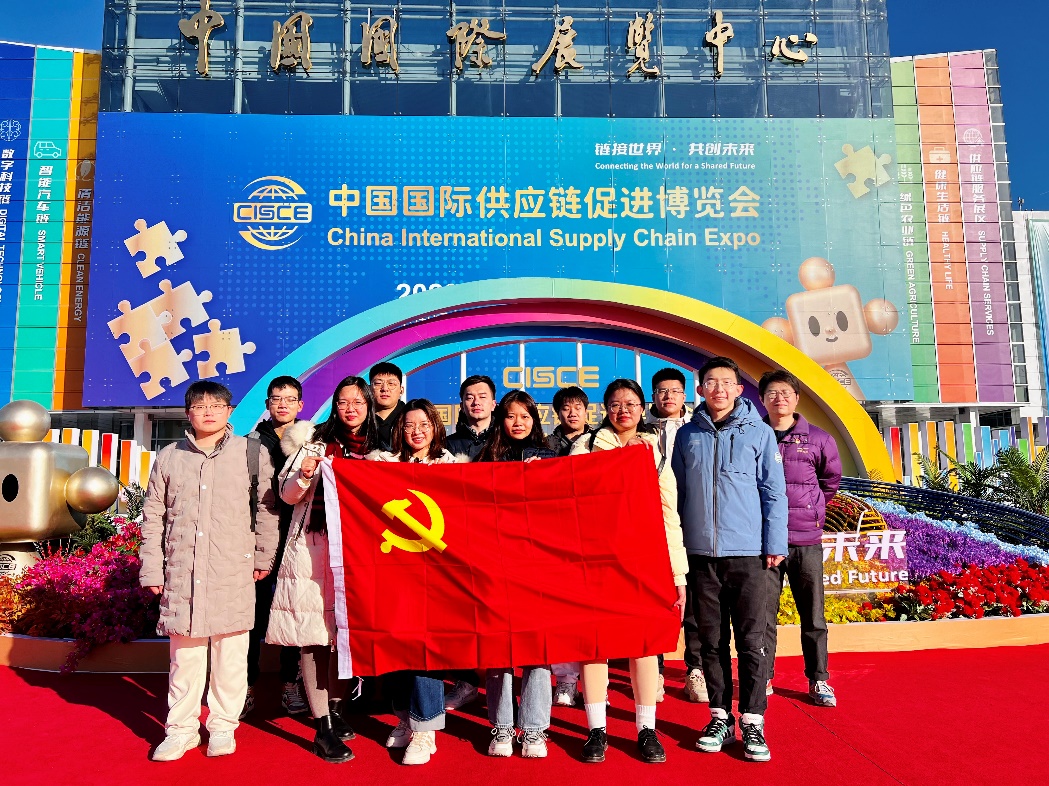 为学习贯彻习近平新时代中国特色社会主义思想主题教育,深入贯彻落实党的二十大精神,加强党支部建设、丰富支部内文化活动,2023年12月2日,德赢vwin官方入口技术经济及管理专业研究生党支部8名党员、预备党员同志及3名入党积极分子在支部书记卢继周老师的带领下前往中国国际展览中心(顺义馆)参观首届中国国际供应链促进博览会(以下简称“链博会”)。