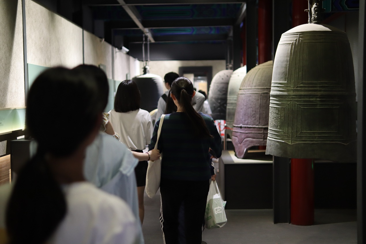 大钟寺古钟博物馆是全国唯一一座以收藏、研究、展示、宣传钟铃文化为主的专题性博物馆,以其独特的钟铃文化吸引着众人。同学们跟随讲解员的脚步,欣赏了明永乐大铁钟、永泰寺铜钟、汇通祠铁钟等珍贵文物。这些古钟不仅见证了历史的变迁,更蕴含着丰富的文化内涵和廉政思想。