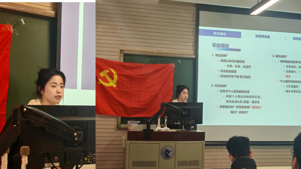 “笃合·凝心聚力”—求职分享专场环节,支部特别邀请到李梦涵、赵康妮、郑佳霓三位2025届毕业生党员,分享关于选调、央国企、银行的求职经验。