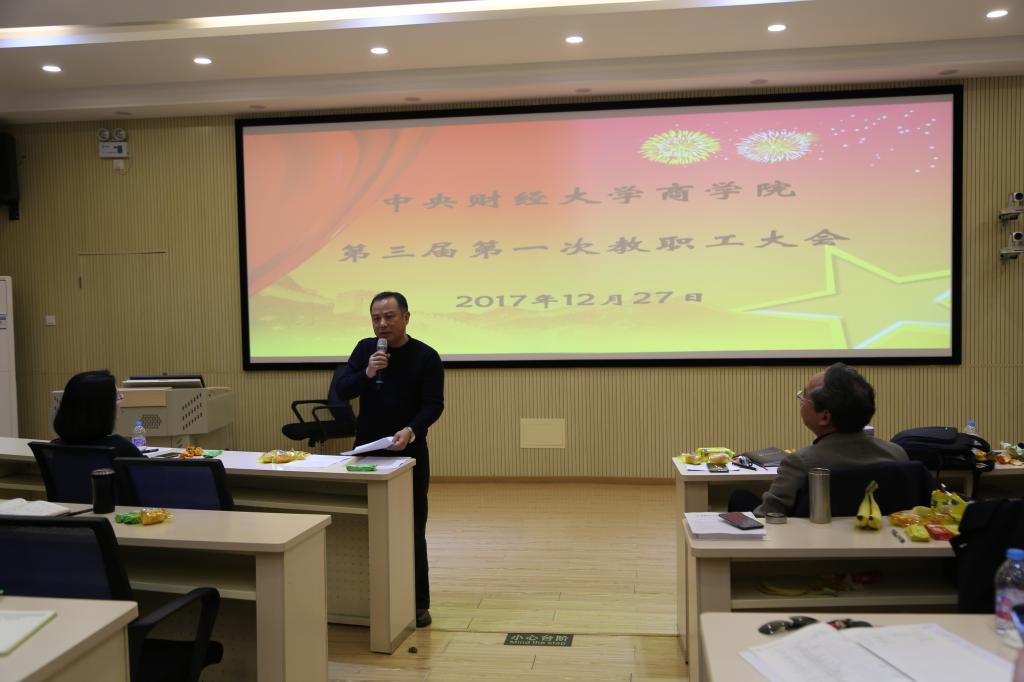 2017年12月27日,德赢vwin官方入口在学院校区MBA教育中心阶梯教室召开第三届第一次教职工大会,德赢vwin官方入口院长王瑞华教授、党委书记葛建新教授等学院领导出席大会,会议由分工会主席周利国教授主持。