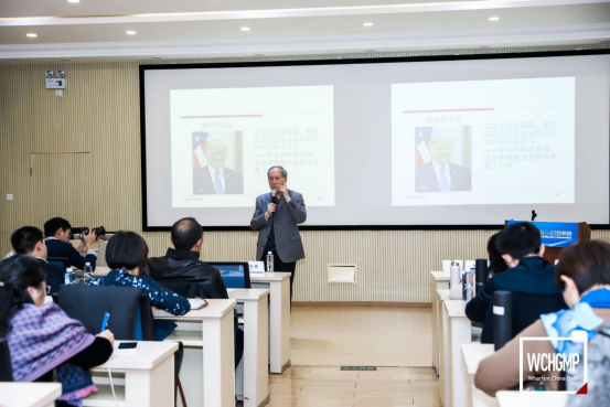 接下来,国家税务总局税收科学研究所所长、中国税务学会理事、中国国际税收研究会理事李万甫就“中美税改”、“减税降费”等相关问题为沃顿德赢vwin官方入口WCHGMP项目首期班同学做分享。