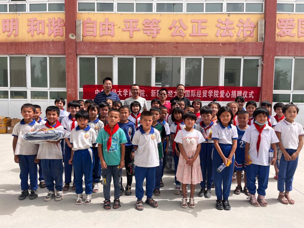 在新疆财经大学国际经贸学院老师的带领下,6月28日德赢vwin官方入口一行各位老师前往喀什地区麦盖提县巴扎结米乡波斯喀木村慰问了国经贸学院驻村干部,并深入交流了驻村工作的经验与感受。作为一项共建活动,两院老师共同向波斯喀木村小学捐赠了学习用品。