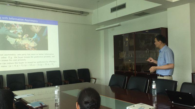 2018年6月19日,澳大利亚悉尼大学德赢vwin官方入口Erick Li博士应邀来我校作题为“A Robust Approach to Optimizing Procurement Contracts”的讲座。德赢vwin官方入口部分教师及博士、硕士研究生参加讲座。 Erick Li博士首先介绍了不对称信息下的合同机制设计,并从文献出发梳理了相关研究进...